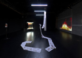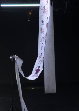 expect extremely poor performance examines the collapse of self-image, exhaustion, and the pressure to perform in a culture of constant optimization, staged as a fragmented monologue between child, adult, and elder selves. The installation merges photography, video, sound, and digital performance: PVC prints on gym racks and tripods turn tools of productivity into sculptural supports, while exposed technical elements mirror the body’s fragility. Motion capture, 3D software, and AI animate my scanned face into three avatars, translating gestures into data and amplifying their emotional intensity.